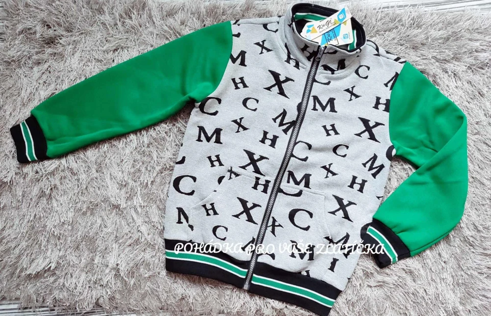 Moderní chlapecká mikina pro dorost, zateplená fleecem, bez kapuce.
