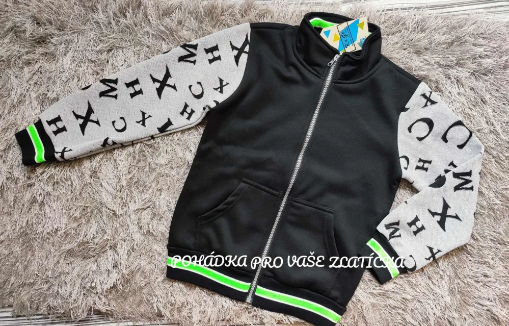 Moderní chlapecká mikina pro dorost, zateplená fleecem, bez kapuce.