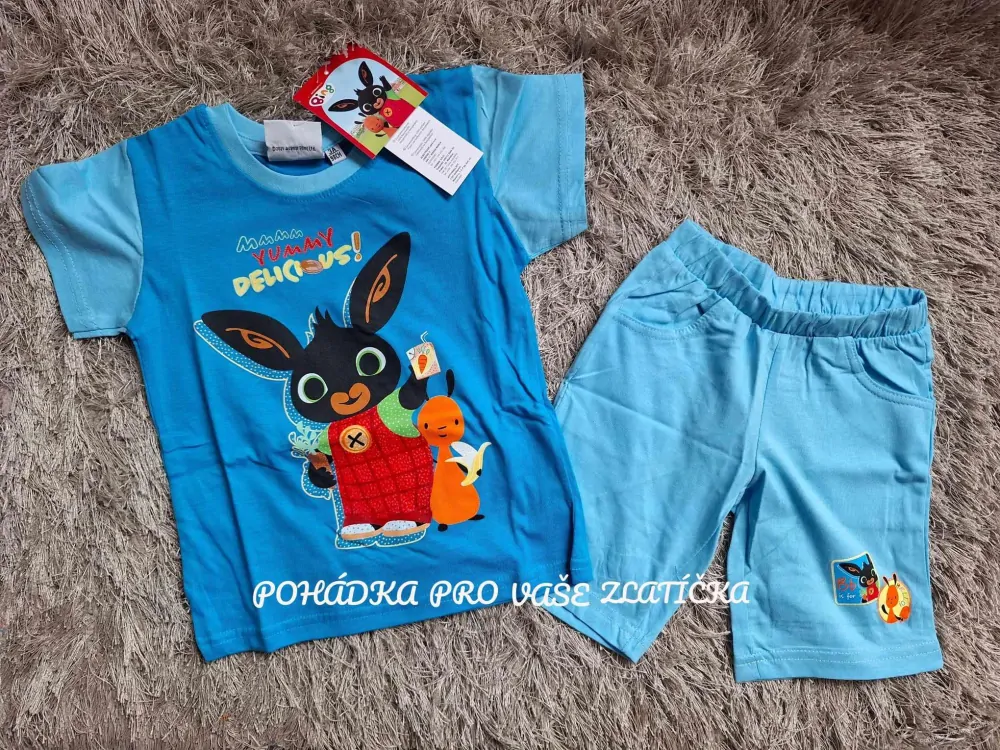 Bavlněný set triko + kraťasy s oblíbenou pohádkovou postavou Bing. Kraťasy v pase do gumy, dvě funkční kapsy.
