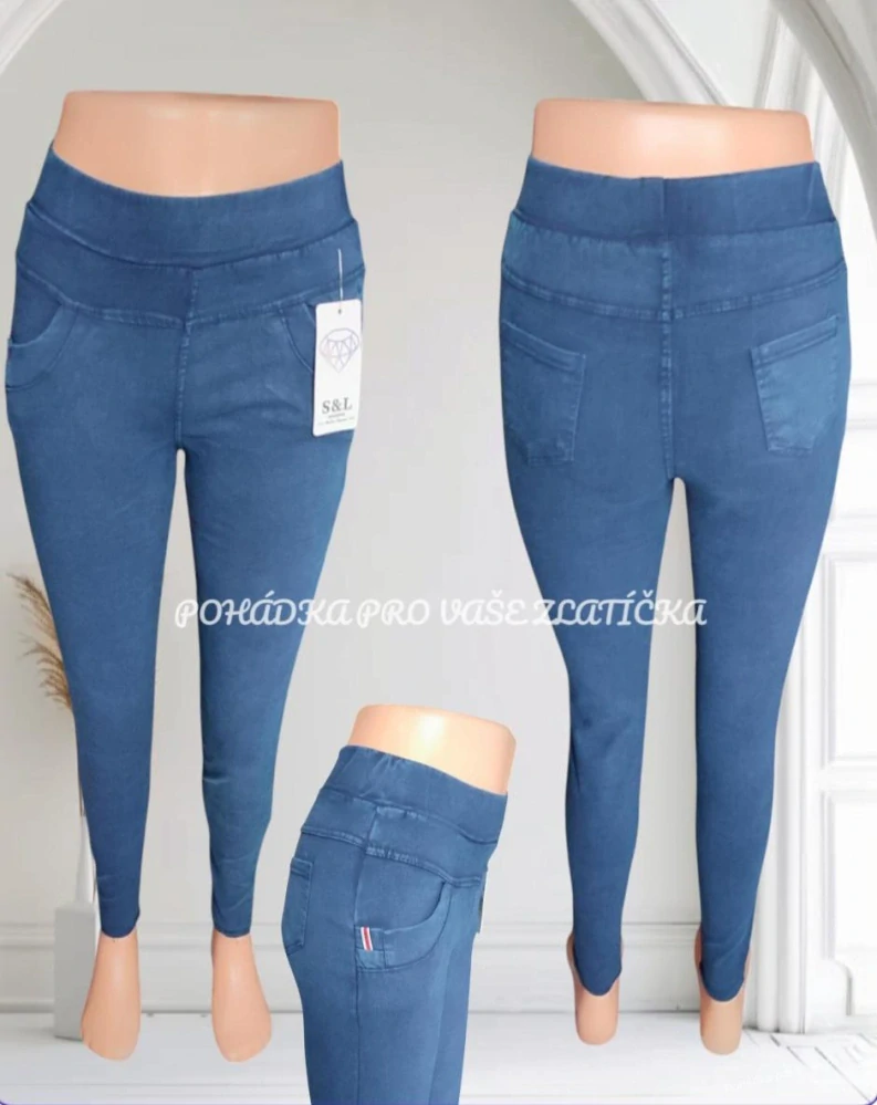 Dámské pružné kalhoty s vyšším pasem - džínový vzhled - velmi pohodlné    celý popis