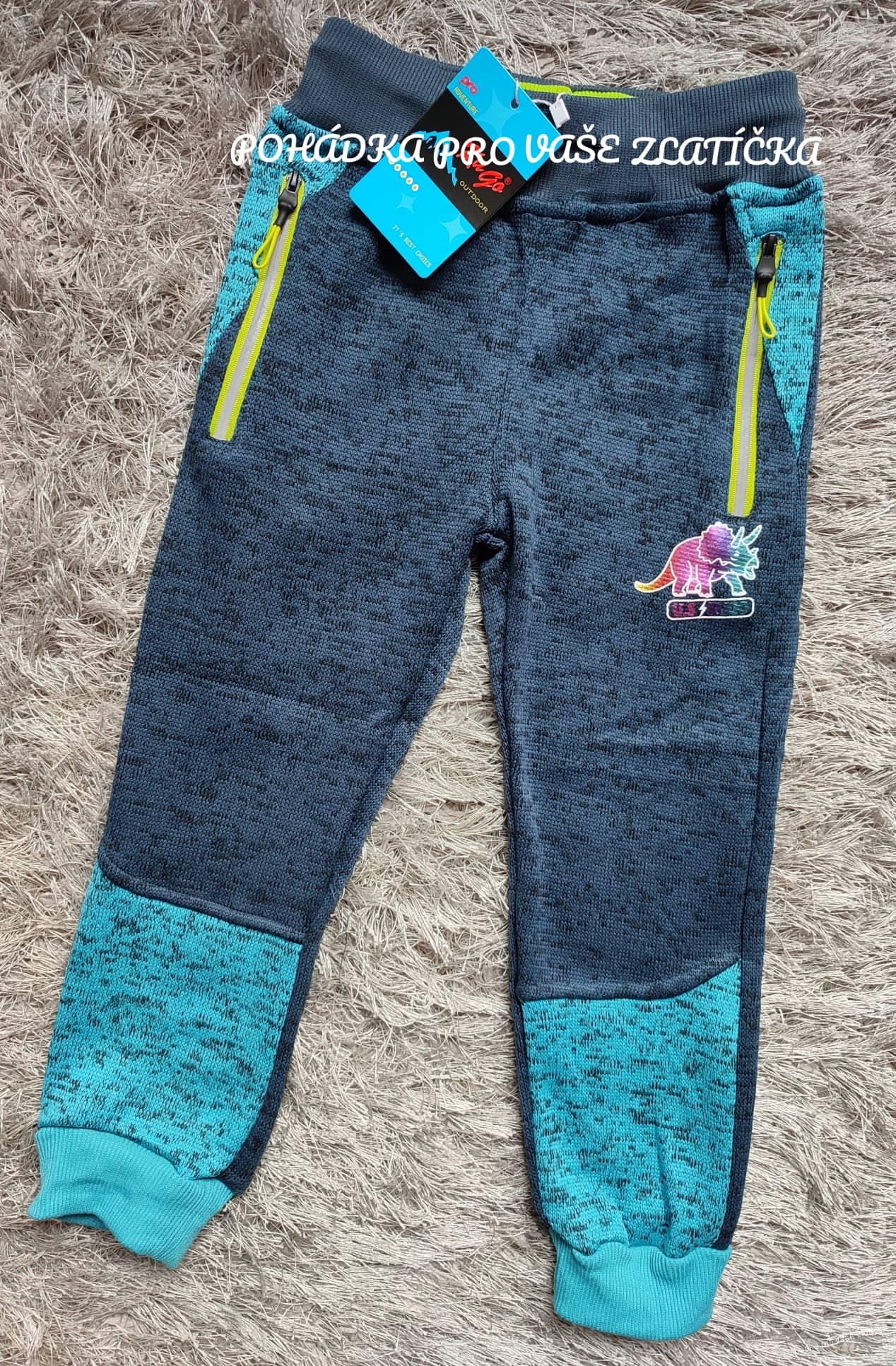 Dětské outdoorové tepláky, z rubové strany fleec. V pase olivka ke stažení, reflexní prvky, dvě kapsy na zip. ORIENTAČNÍ ROZMĚRY: vel. 104: Délka 62cm, délka vnitřní nohavice 43cm, pas v klidu 48cm, při natažení 54cm vel. 110: Délka 66cm, délka vnitřní nohavice 45cm, pas v klidu 50cm, při natažení 5... celý popis