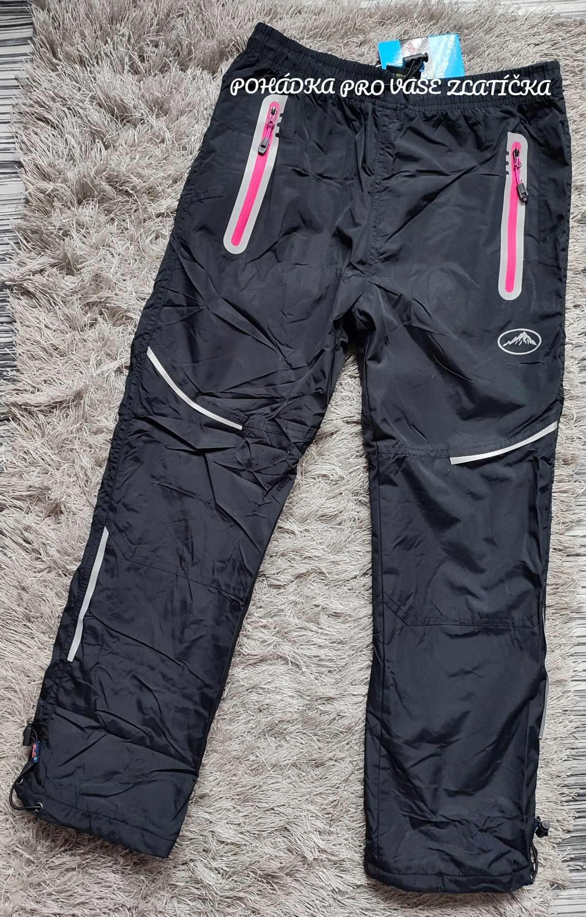 Šusťákové zimní nepromokavé kalhoty Kugo podšité fleecem, reflexní prvky, dvě kapsy na zip.