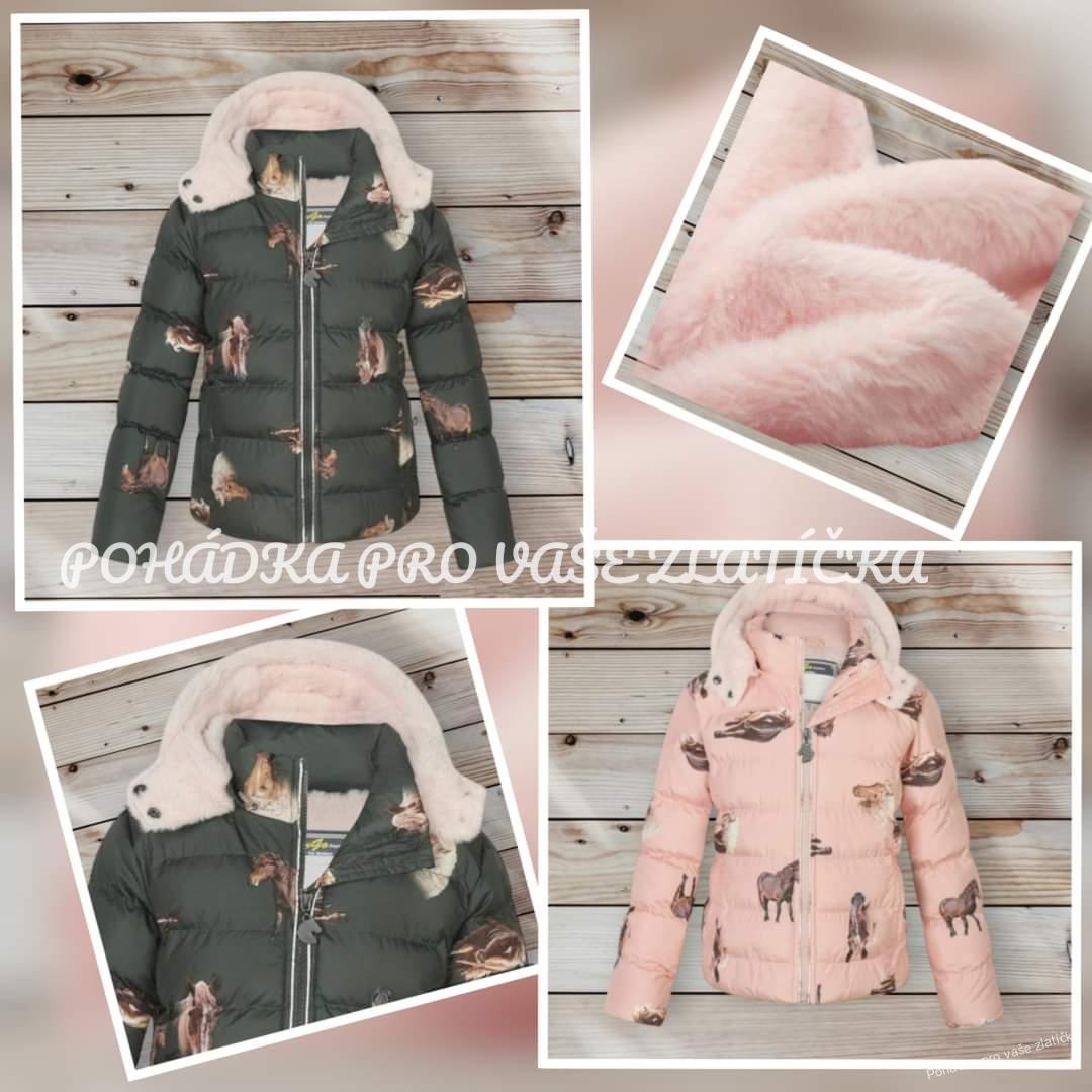 Dívčí zimní bunda s oblíbeným motivem. Vnitřní strana hřejivý chloupek, také v kapuci, rukávy a spodní část bundy porubu ještě nylon, odnímatelná kapuce, dvě boční kapsy.